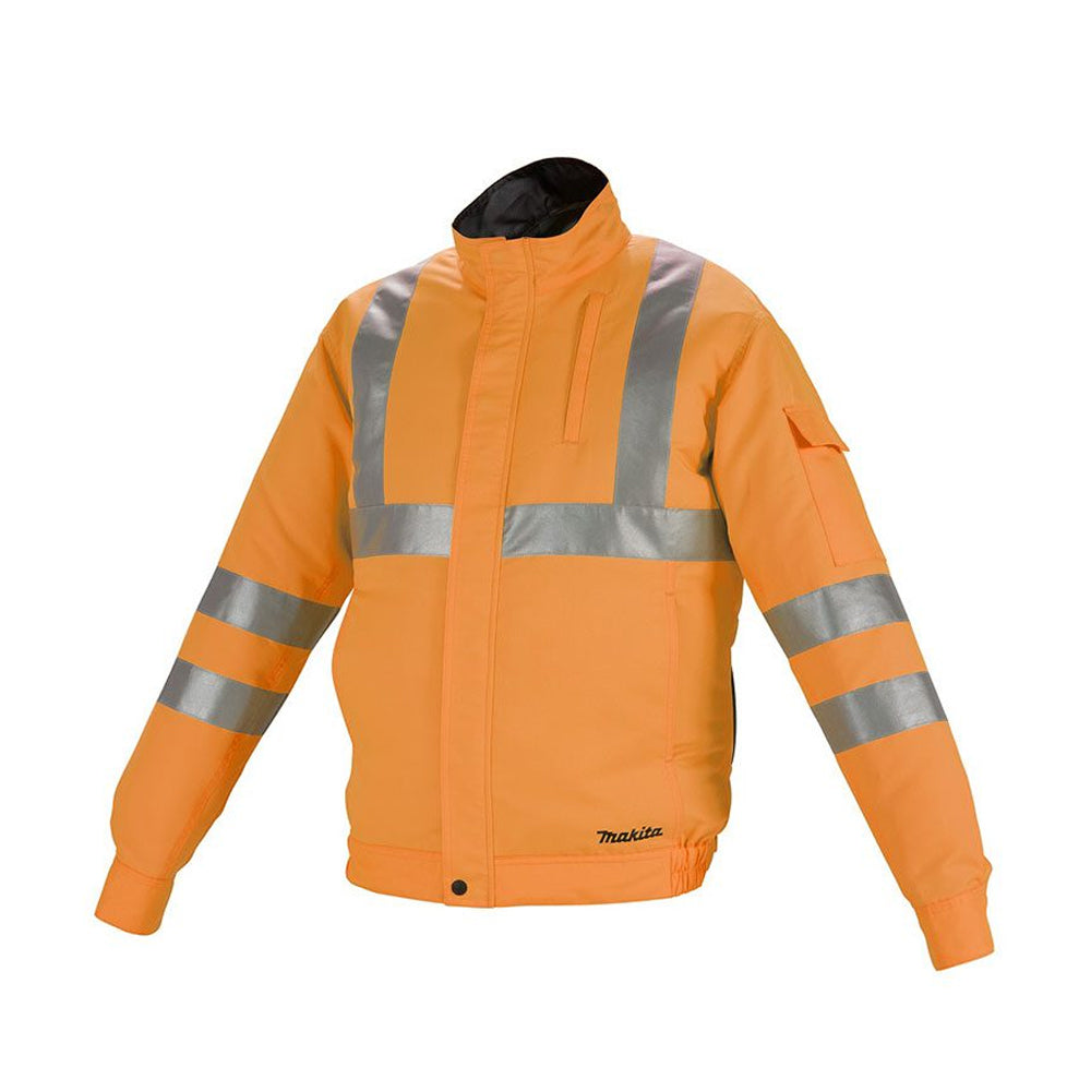 Áo khoác làm mát Makita DFJ214O dùng Pin 18V LXT, 14.4V, 12Vmax CXT, chất liệu sợi tổng hợp chống thấm, chống tĩnh điện có phản quang