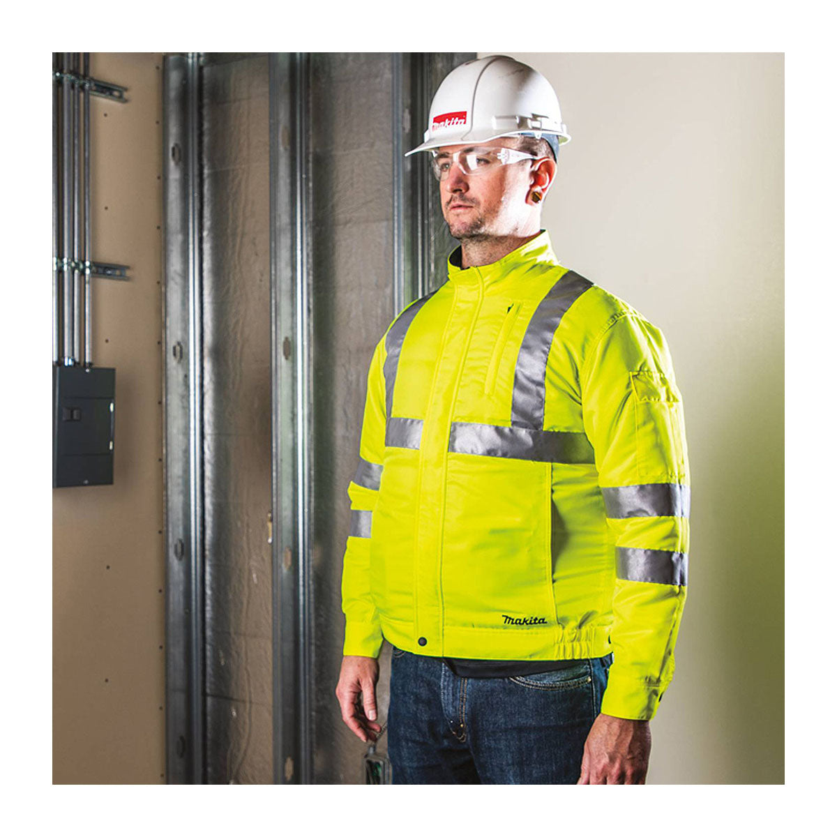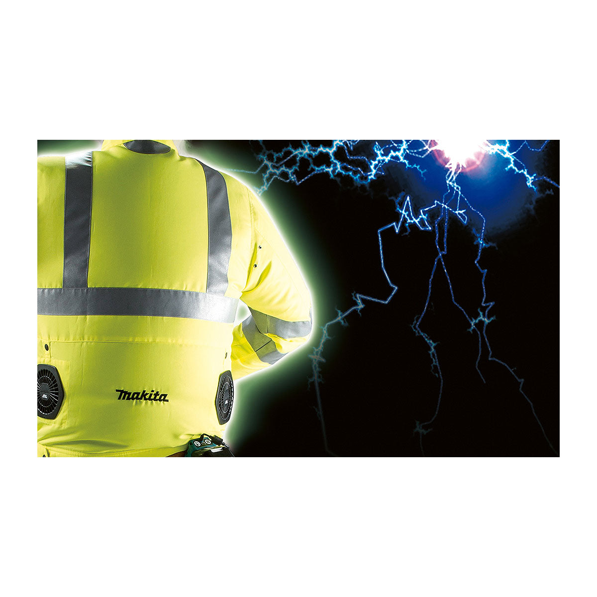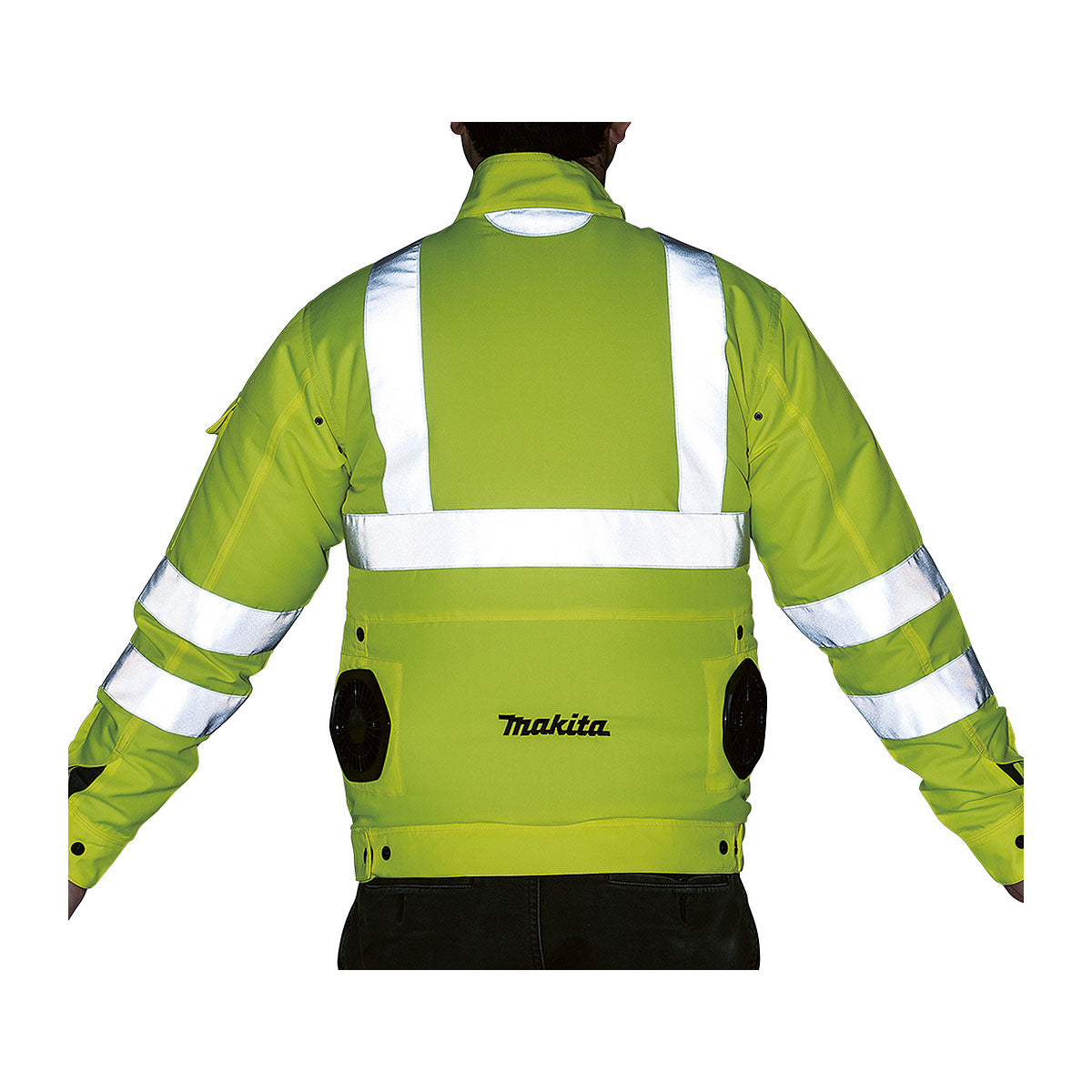 Áo khoác làm mát Makita DFJ214Z dùng Pin 18V LXT, 14.4V, 12Vmax CXT, chất liệu sợi tổng hợp chống thấm, chống tĩnh điện có phản quang