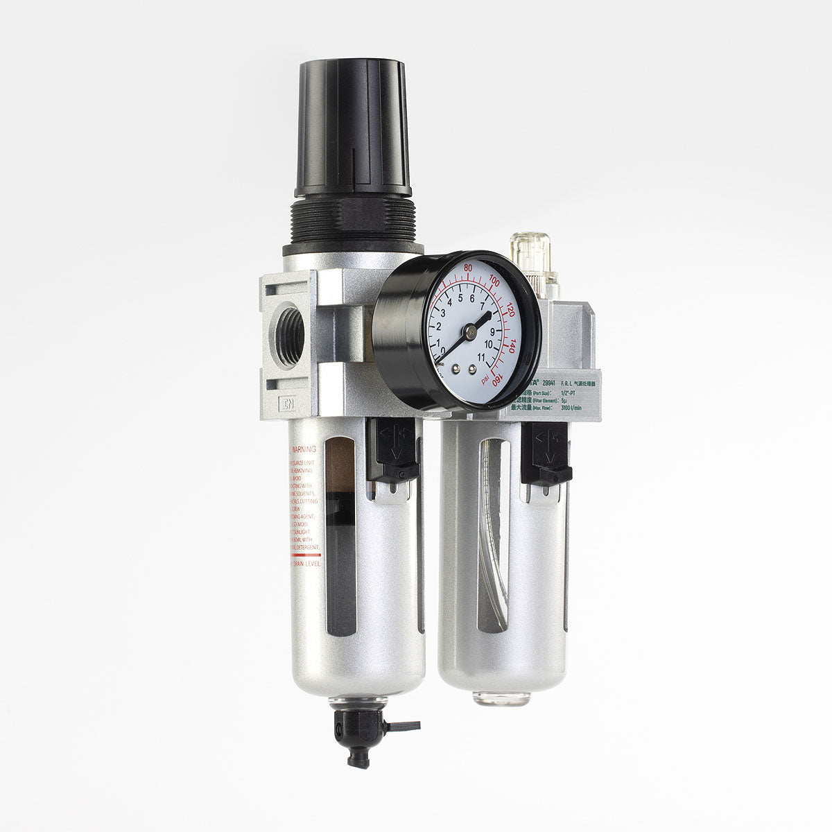 SATA 29941 - Ống nối 1/2 inch, lưu lượng khí 3100 lít/phút, áp suất đầu vào 15 bar, áp suất đầu ra 10 bar, dung tích chén lọc 55ml, dung tích chén dầu 80ml