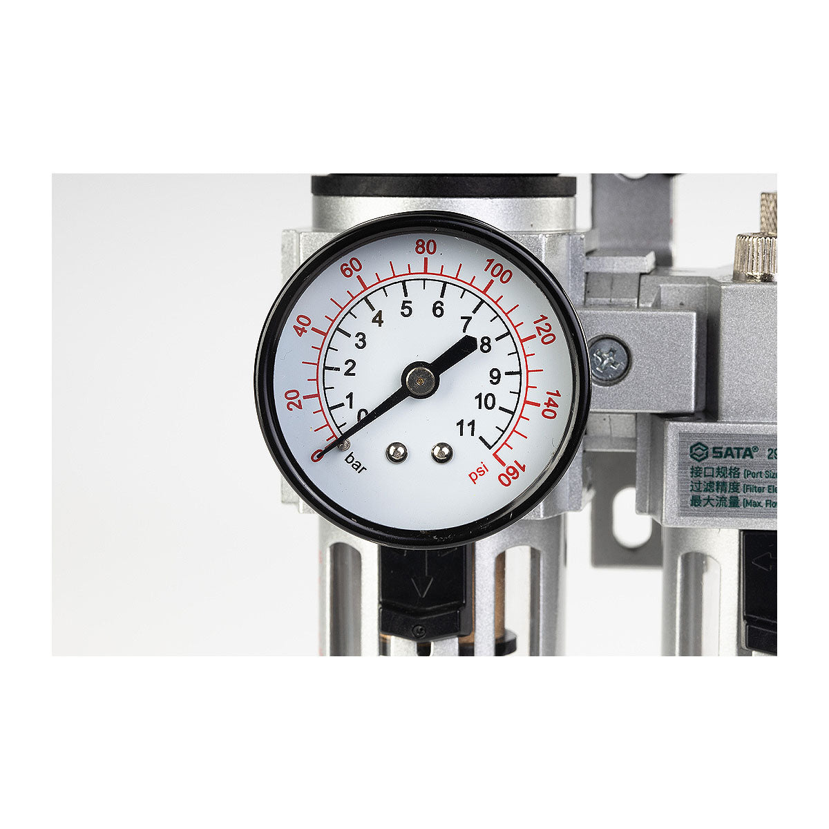 SATA 29921 - Ống nối 1/4 inch, lưu lượng khí 2200 lít/phút, áp suất đầu vào 15 bar, áp suất đầu ra 10 bar, dung tích chén lọc 55ml, dung tích chén dầu 80ml