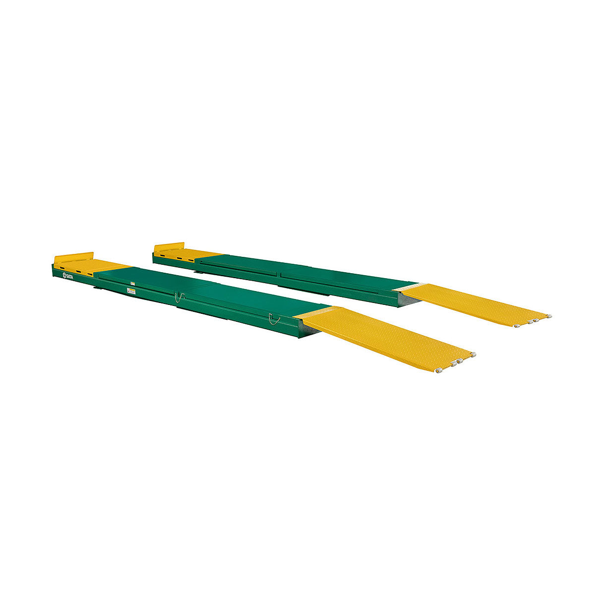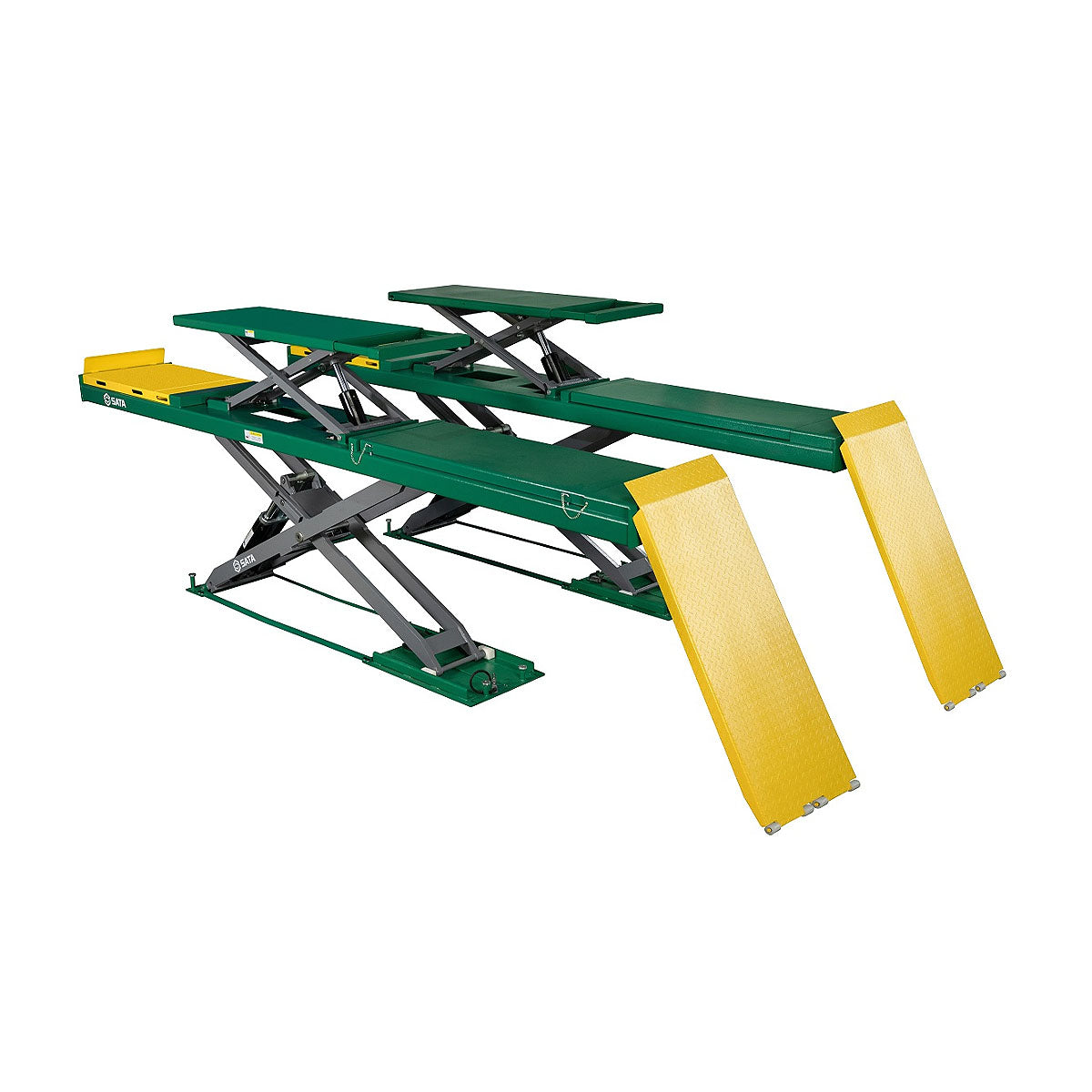 Bàn nâng ô tô SATA, dạng cắt kéo thân mỏng, bệ nâng thon dài, tải trọng 4 tấn, loại sử dụng điện 220V và loại 380V